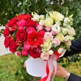 Клубника и цветы в шляпной коробке