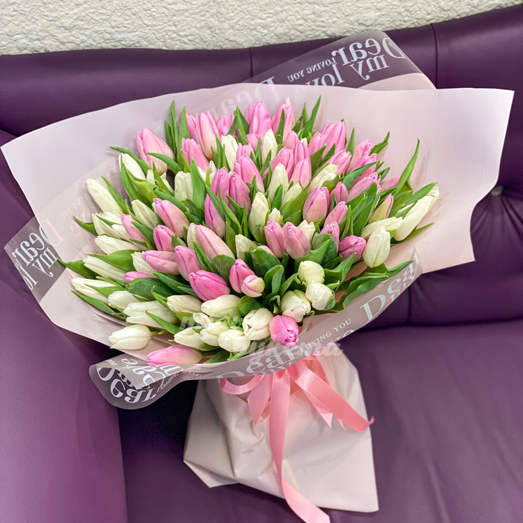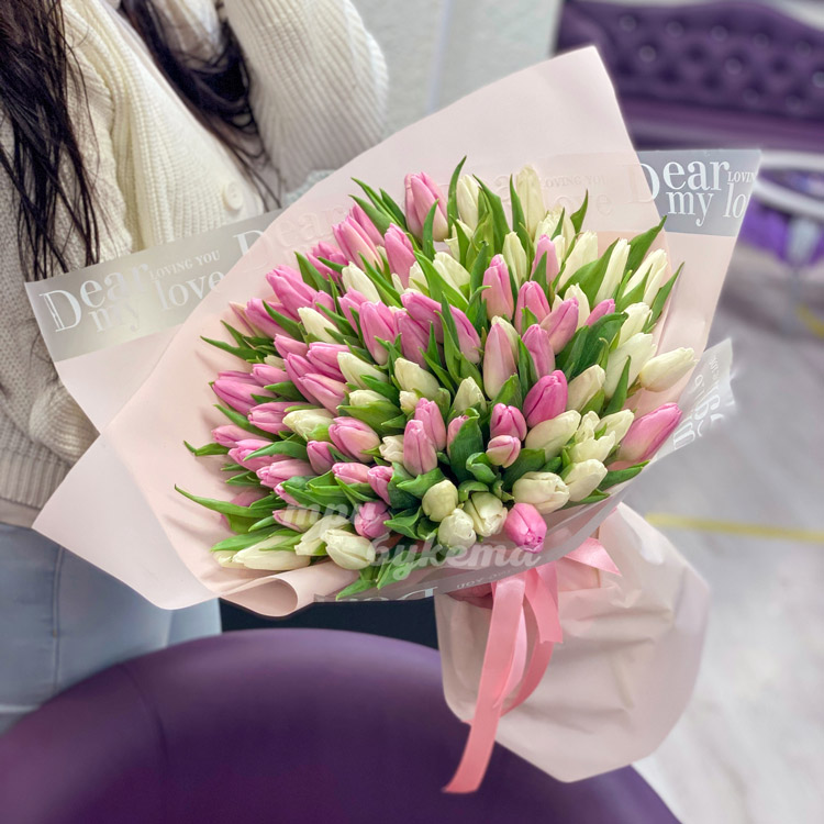 - Белые и розовые тюльпаны, 101 шт.
