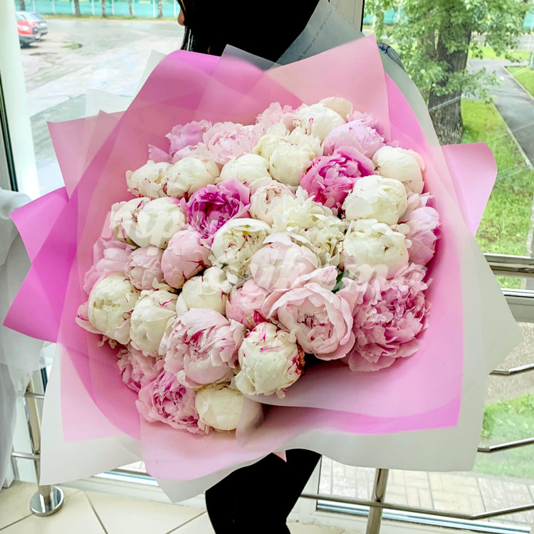 39 светло-розовых и белых пионов