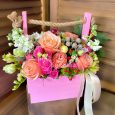 9 разноцветных роз в корзине