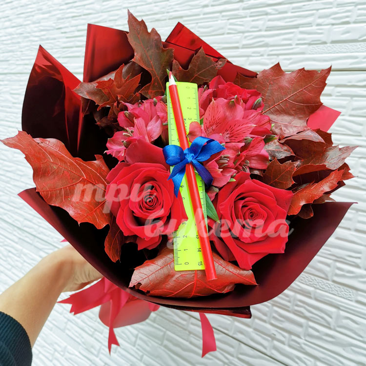 Букет альстромерий и роз с линейкой