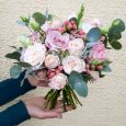 Букет из голубых гортензий и роз