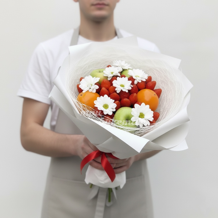Букет из клубники и ромашек