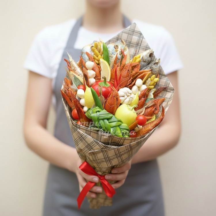 Букет из раков и вяленой рыбы