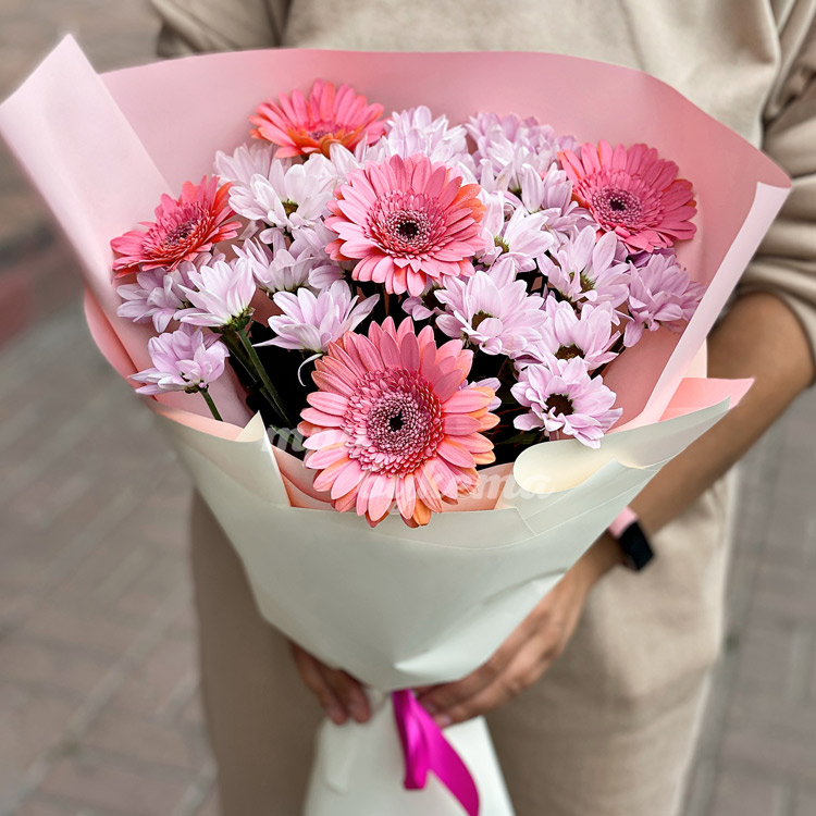 Букет сиреневых хризантем и гербер