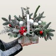 Хризантемы и желтые орхидеи в ящичке
