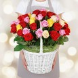 Коробка красных и персиковых французских роз