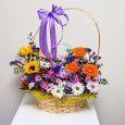 Корзина хризантем, гвоздик и роз