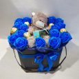 Корзина ирисов и тюльпанов с плитками шоколада
