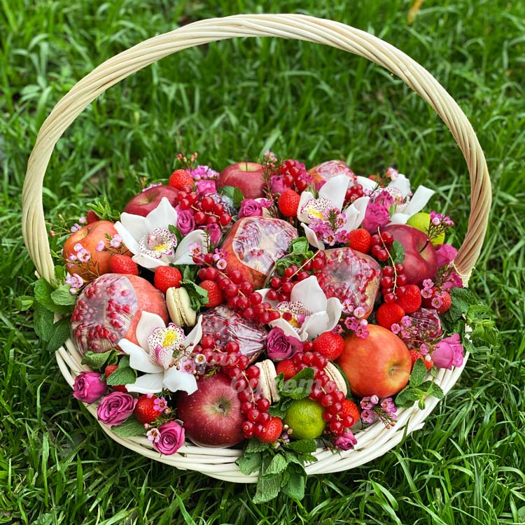 Корзина с цветами, ягодами и фруктами